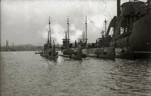 foto: Submarinos clase B y el buque de apoyo Kanguro en la bahía de Pasajes (1922)