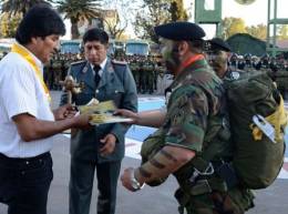 (defensa.com) El presidente Evo Morales entregó un lote de 540 paracaídas nuevos al Centro de Instrucción de Tropas Especiales (CITE), al conmemorarse los 50 años de creación de la unidad, que pasa a llamarse ahora Regimiento de Fuerzas de Comando Aerotransportado 18 Victoria- Escuela de...