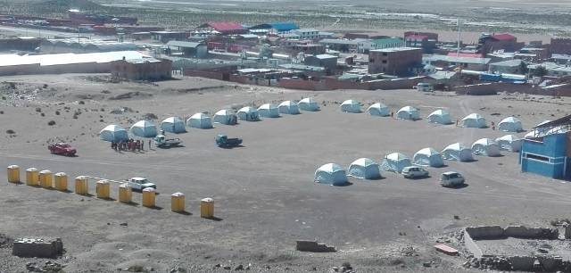 El Ministerio de Defensa construyó el campamento para aislar a los 480 bolivianos repatriados, estos ingresaron el sábado 4 de abril en un convoy de flotas que fue coordinado entre las cancillerías de ambos países. El campamento “Tata Santiago” cumple con todos los protocolos establecidos por la Organización Internacional para las Migraciones OIM, está asegurada la alimentación, las vituallas para cada uno de los repatriados. Está bajo el control y vigilancia de Defensa Civil junto a personal militar del regimiento de Infantería 22 Mejillones, con asiento en la localidad de Huachalla. (Aldo Eyzaguirre Corresponsal Grupo Edefa en Bolivia)