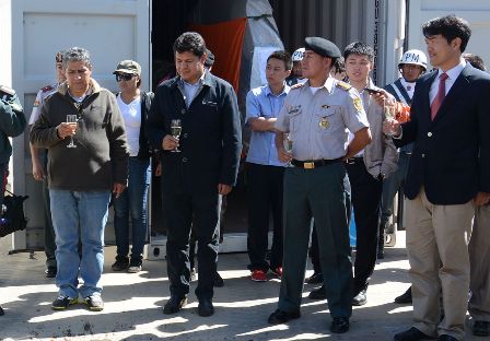 Los helicópteros llegaron en contenedores y serán ensamblados en la ciudad de Cochabamba, el costo de las aeronaves es de 103 millones de bolivianos, recursos provenientes de la nacionalización de los hidrocarburos.