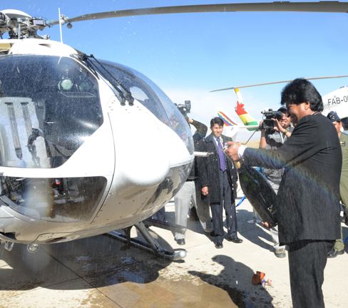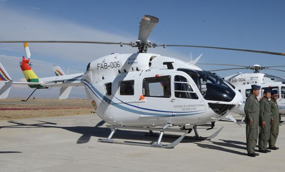 (defensa.com) Evo Morales entregó a la Fuerza Aérea Boliviana un nuevo helicóptero EC-145, del fabricante Airbus Helicopters, en instalaciones del Grupo Aéreo Presidencial “Bolivia”, ubicado en la Base Aérea de la ciudad de El Alto. Con esta aeronave son cuatro helicópteros de este mismo tipo los que ha incorporado la Fuerza Aérea; los tres anteriores arribaron a Bolivia entre diciembre de 2012 y mayo de 2014.