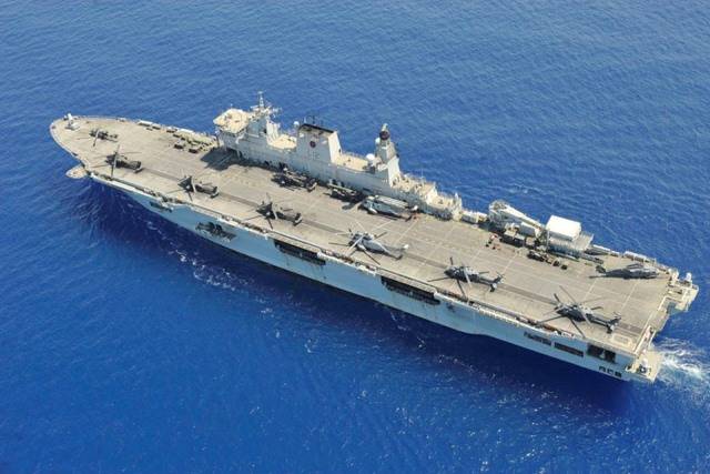 La estructura de su cubierta de vuelo es lo suficientemente robusta para recibir los caza MacDonnell Douglas AV-8B Harrier II Plus, cuyo peso máximo en despegue vertical es de 9,4 toneladas. El navío anfibio L12, L por Landing, que tiene 21.500 toneladas, es el actual buque insignia de la Royal Navy , será dado de baja el próximo año, aunque no será relevado en dicha función por el portaviones Queen Elizabeth (R08), que tiene más de 65.000 toneladas, hasta el año 2020 cuando esté plenamente operativo. (Javier Bonilla)