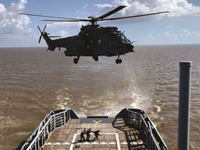 El pasado 18 de junio se realizó la Auditoría de Seguridad Aérea (VSA) del Buque de Apoyo Oceánico "Iguatemi", perteneciente al Comando del Grupo de Patrulla Naval del Norte, en Belém. Estuvo conducida por el Servicio de Investigación y Prevención de Accidentes Aeronáuticos de la Marina y contó con la participación de la primera aeronave UH-15 , Airbus Super Cougar, del futuro Primer Escuadrón de Helicópteros de Empleo General del Norte, que funcionará en el entorno del Aeropuerto Internacional de Belém, en instalaciones recientemente cedidas por la Fuerza Aérea.