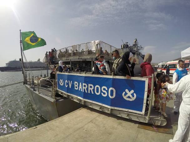 Dos barcos italianos de patrulla de pequeño porte se unieron a la acción y, en vista de la imposibilidad de tales buques de recibir al grupo de inmigrantes a bordo, la Guardia Costera italiana solicitó el apoyo de la Marina de Brasil para efectuar el rescate y posterior transporte al puerto italiano de Catania. El Comandante de la Marina de Brasil autorizó de inmediato la operación. Fueron recibidos 220 refugiados, entre ellos 94 mujeres, 37 niños y 4 bebés en brazos, muchos de ellos extremadamente débiles. Después de 5 horas de navegación, la corbeta brasileña desembarcó a todos los pasajeros con vida en el puerto italiano de Catania, en Sicilia. La comunicación del éxito de la operación fue transmitida por el Ministro de Defensa Jaques Wagner a la presidente Rousseff y al resto del gabinete. (Javier Bonilla)