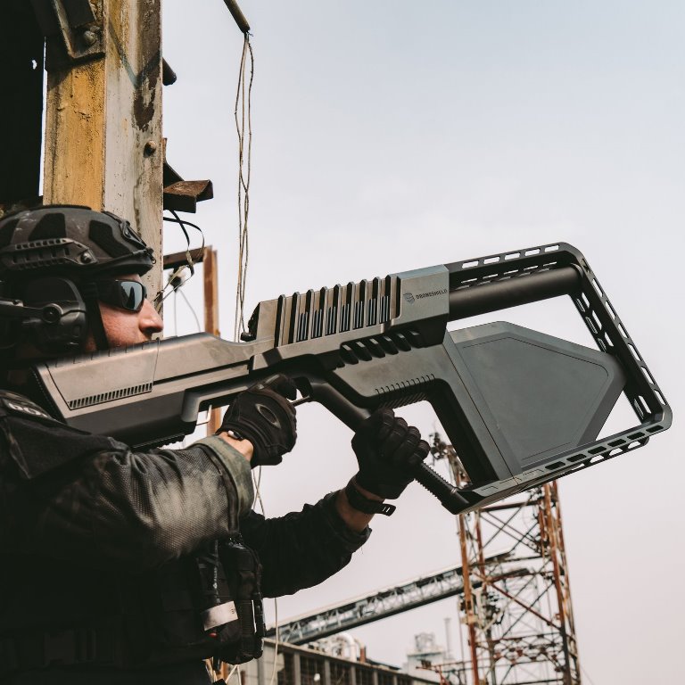 Expone también el DroneGun Mk4, un dispositivo manual con un alcance efectivo de hasta 1 kilómetro y peso de apenas 3,2 kilogramos incluyendo la batería. Este equipo permite disrumpir simultáneamente el control, navegación y transmisión de video de varios drones, ofreciendo más de una hora de autonomía.