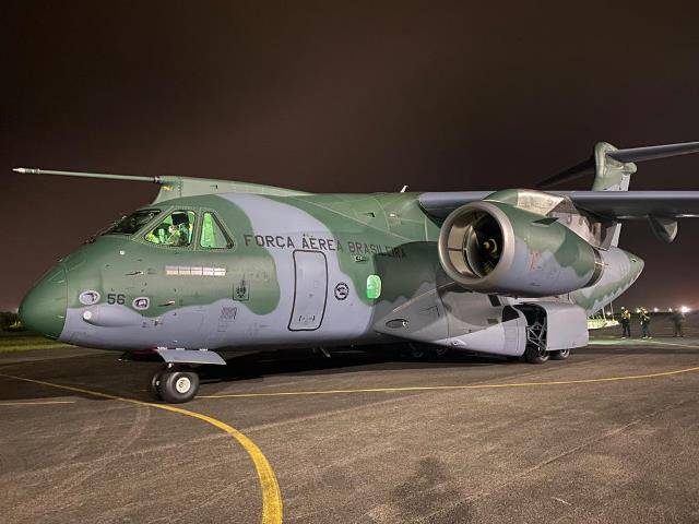El Embraer KC-390 Millennium de la Fuerza Aérea Brasileña (FAB), operado por el Primer Grupo de Transporte de Tropas (1er GTT) - Escuadrón Zeus, transportó ocho toneladas de equipos a Manaus. El FAB 2856 despegó de la Base Aérea de Galeão, en Río de Janeiro , a las 16:10 , con destino al Ala 8, en la capital amazonense , donde aterrizó a las 21.00 con suministros hospitalarios, camas, cilindros de oxígeno, camillas y carpas, por un total de 8.820 kilos de materiales que equiparán al nuevo Hospital de Campaña (HCAMP).