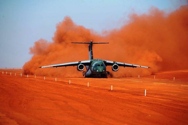 En su unidad de Gavião Peixoto (estado de São Paulo), Embraer Defesa & Segurança ha estrenado una pista de tierra de 1.800 metros, cuya primer misión es la de realizar allí una serie de pruebas tendientes a la certificación de su nuevo carguero militar, el mayor avión construído en Sudamérica.