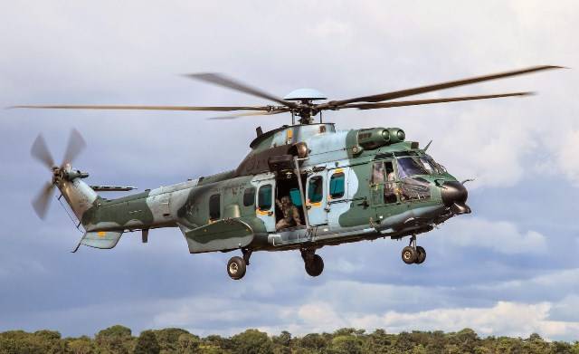 Dos helicópteros pesados H225M Caracal se pusieron a disposición de las actividades de garantía de seguridad pública. Son los más grandes de la flota de la FAB. Cada uno transporta 29 soldados armados, dos más tripulantes a distancias de hasta 800 kilómetros y pesa cerca de 11 toneladas. El Caracal, en su versión básica inclusive, está preparado para recibir ametralladoras pesadas en soportes laterales y todo tipo de sensores