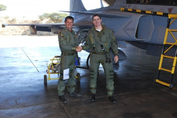 La visita de Brasil incluyó el vuelo en Gripen de dos pilotos de la FAB acompañados de pilotos sudafricanos. La delegación fue recibida por el comandante de la Fuerza Aérea Sudafricana (SAAF), Teniente general Fabian Msimang, e incluía a representantes de la Comandancia General de Operaciones Aéreas (COMGAR), el Comando General de Apoyo (COMGAP), Departamento de Ciencia Aeroespacial y Tecnología de Aspersión (DCTA) y la Comisión de Coordinación del Programa de Aviones de Combate (COPAC).