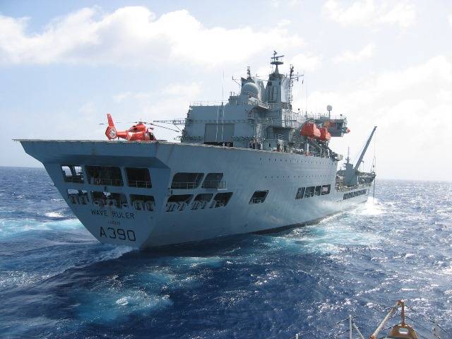 Utilizando esta tecnología y pertenecientes a la Real Flota Auxiliar (RFA) británica, los buques de la clase Wave, de 196,5 m de eslora y 31.500 toneladas de desplazamiento cargados, alcanzando una velocidad de 18 nudos con alcance de 8.000 millas náuticas, transportan hasta 16.000 m3 de combustible( 3.000 m3 aeronáutico) 380 m³ de agua -Equipamientos de ósmosis inversa instalados a bordo garantizan la producción de 100 m3 de agua potable al día-y 500 m3 de material sólido.