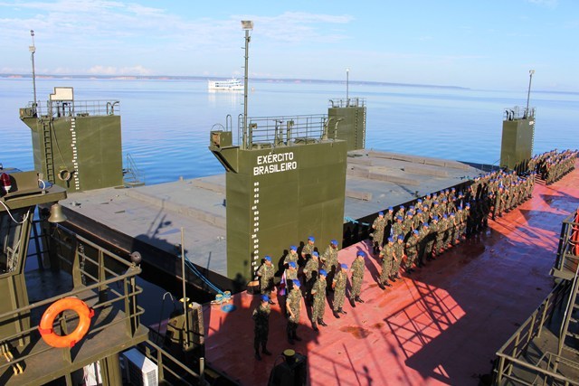 El Comando Militar de la Amazonia (CMA) está trabajando para transformar su actual Centro de Embarcaciones (CECMA), con sede en la ciudad de Manaus, en un Batallón de Transporte. El Centro es responsable de todo el transporte fluvial táctico y logístico en el ámbito de la 12ª Región Militar (12ª RM). El pasado 25 de mayo el CECMA recibía la balsa-dique "Pirarucu", completamente modernizada. La embarcación aumentará la capacidad de mantenimiento de casco en los barcos de las organizaciones militares de la 12ª Región Militar. Con un área útil de 648 m², lo necesario para levantar embarcaciones de hasta 120 pies, la balsa-dique tiene capacidad para soportar hasta 400 toneladas. Su operación exige el trabajo coordinado de al menos ocho militares, que recibieron capacitación directamente del astillero responsable de la reforma.