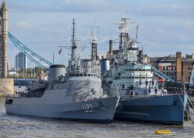 Fotografía: 1- El U-27 “Brasil” (izquierda) en el Rio Támesis, a su lado el crucero HMS “Belfast”. (foto:girl about Thames)
