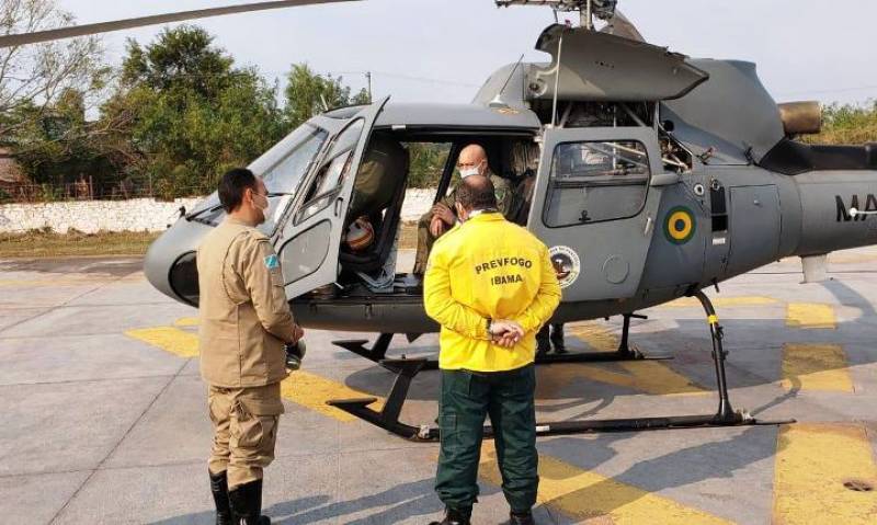 Diversas salidas han sido realizadas por un Esquilo UH-12 naval, con helibalde, en las regiones más afectadas cerca de las ciudades de Corumbá y Ladário, en la frontera con Bolivia. La cantidad total de agua vertida inicialmente con este equipo en los incendios fue de aproximadamente 1.560 litros de agua.