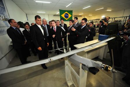 Acompañado por su viceministro de Defensa y algunos jefes militares, Correa conoció diversos proyectos de la empresa brasileña en el área de los UAV, particularmente en el ámbito de la integración de Horus FT100. En las instalaciones se encuentran varias unidades en fases de montaje y pruebas que serán entregadas al Ejército Brasileño .