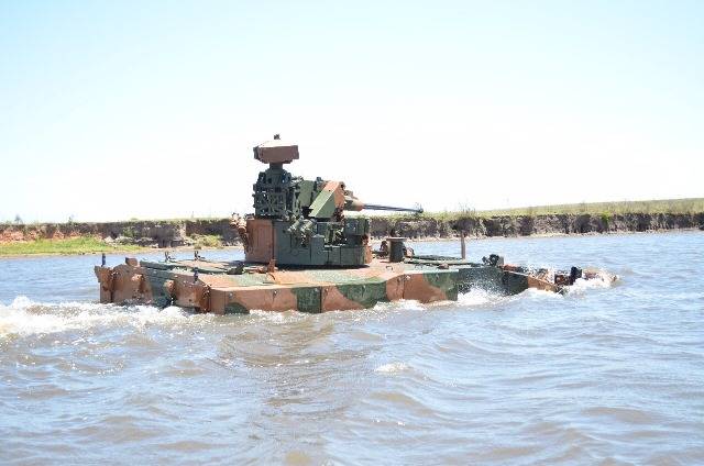 La navegación, en el embalse Tuiuti, formó parte del proceso de experimentación doctrinal de la Infantería Mecanizada, en curso del 29 de octubre al 10 de noviembre, en el Campo de Instrucción Barão de São Borja, en Rosario del Sur (Ituzaingó), cerca de la frontera con Uruguay. (Javier Bonilla)