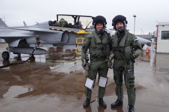 Formados por la Academia de la Fuerza Aérea, el capitán Fórneas era piloto de F-5 y el capitán Pascotto de Mirage 2000. Ambos están en Suecia desde noviembre 2014, abocados a la realización de un entrenamiento de 6 meses de duración y se convertirán en los primeros instructores de combate brasileños en Gripen. (Javier Bonilla)