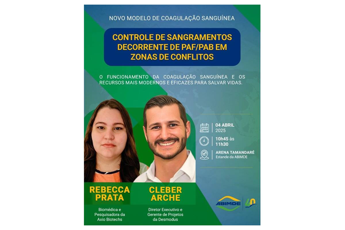 Este viernes 4 de abril, a las 10.45, la Dra. Rebecca Prata, científica biomédica e investigadora de Axio Biotechs, y Cleber Battisti Archer, director ejecutivo y gerente de proyectos de Desmodus, serán los facilitadores del taller “Control del sangrado resultante de enfrentamientos en zonas de conflicto”. Durante la presentación se abordarán los nuevos modelo de coagulación sanguínea, que se diferencian de los modelos tradicionalmente enseñado, al menos desde 1960. El foco estará en un modelo más reciente, desarrollado a partir de 2016, que ofrece una comprensión más avanzada, eficaz y precisa de los procesos involucrados.