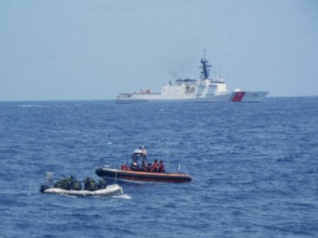 Posteriormente, el USCG “Stone”- nuevo cutter de la Clase Legend- realizó ejercicios de Búsqueda y Rescate, con simulaciones de la solicitud de rescate y rescate de una embarcación lesionada y el rescate de un náufrago por buzos lanzados por la aeronave orgánica del buque, un helicóptero MH 65C Dolphin, una variante de la versión estadounidense del Airbus 365 Dauphin. (Javier Bonilla)
