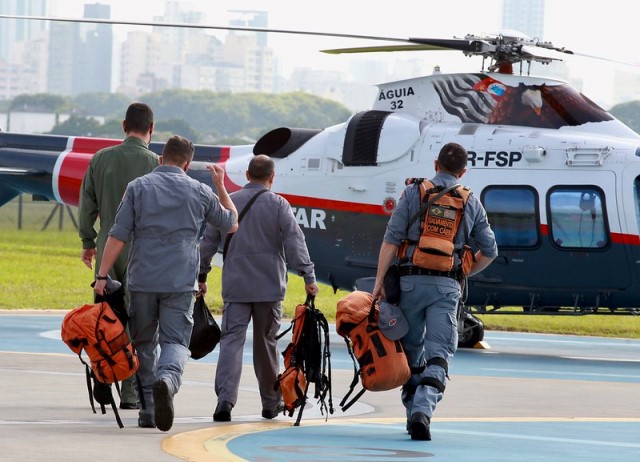 Cuerpos policiales de otros estados también se han hecho presentes en la zona para brindar su apoyo, especialmente con helicópteros- el AW 109 Grand New de la Policía Militar paulista- y perros rescatistas del estado de Paraná. (Javier Bonilla)