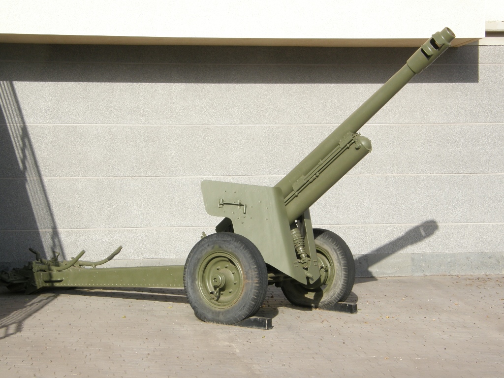 El Reinosa 105/26, por otro lado, se refiere a una denominación genérica de una serie de obuses de 105mm fabricados por los talleres del arsenal de la Armada en Reinosa para el Ejército de Tierra español a partir de 1943. El diseño del obús se basaba en el alemán leFH-18 de la Segunda Guerra Mundial, modificado con un recuperador sobre el tubo, un freno en el trineo bajo el tubo y un cierre de cuña horizontal modificada (más corta que la del leFH-18 en su parte posterior). Otros cambios incluían detalles del freno, y distinto recuperador, mantelete y otros elementos. El R-46 era una evolución del Modelo 1948, y construido a partir de 1951; tenía un tráiler de llantas metálicas y neumáticos, y carecía de freno de boca. El obús R-46 tiene un peso de pieza de 1985kg y un peso en posición de tiro de 2535kg. Su sector de tiro horizontal es de 56 grados; y el sector de tiro vertical es entre los 5 y 42 grados. Su alcance efectivo es de los 8.000 metros, y su alcance total es de los 10.675 metros.