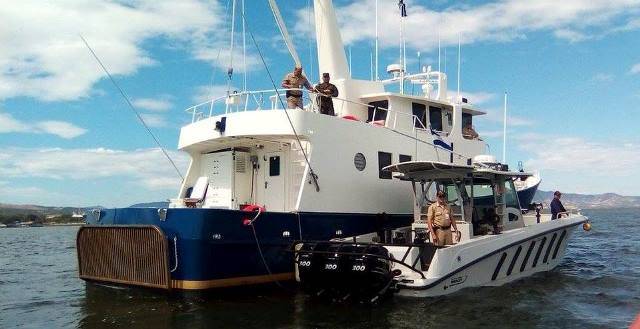 El Salvador acaba de recibir el Patrullero Marítimo N.º 14 (PM14), pero es una nave propia para realizar exploraciones del medio ambiente marino. La denominación de patrulleros marítimos (PM) en El Salvador se le otorga a los guardacostas, anteriormente bautizados con el prefijo GC, seguido por el número de servicio. La asignación del banderín PM14 supone la presencia de un PM13, del que no se han dado detalles públicos, y lo que nos hace pensar que se trata del primer navío tipo Defiant-85, a ser distribuidos en Centro América por la US Navy, bajo el programa de Embarcaciones Patrulleras Cercanos a la Costa (NCPV - Near Coastal Patrol Vessels). Como su denominación lo indica, no son navíos propios para patrullajes de largo alcance, sino que se mantienen muy cerca de la costa. El Defiant-85 es un diseño DSPa-2606, modificado por la Metal Shark.
