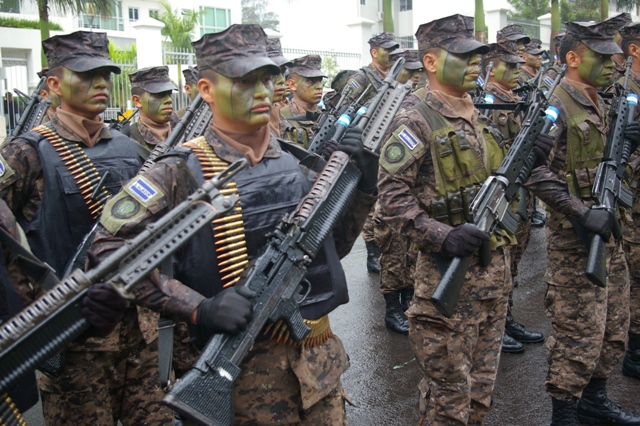 Con la situación imperante, el país vive una escalada militar en asuntos de seguridad nacional sin señal de apaciguarse. Al contrario, se establecieron una serie de comandos conjuntos militares-civiles para luchar contra las pandillas, mientras que la Fiscalía General (FGR) lo hacía contra la corrupción de las elites políticas y económicas. Sin embargo, la preparación de un soldado no es acorde con la seguridad pública, por lo que el paso salvadoreño deja mucho que desear y merma en realidad poco la criminalidad. En este panorama, es notable la aversión salvadoreña a crear una gendarmería que pueda encajar mas acertadamente lo que ahora se hace con efectivos de infantería. Esta aversión responde a la mala experiencia con los antiguos Cuerpos de Seguridad Pública (CUSEP), sin embargo, la participación del ejército goza de un amplio apoyo civil, harta de la crónica inseguridad. Hasta 2010, poco más del 45% respaldaban un golpe de estado si el gobierno siguiera sin resolver las dificultades económicas y de seguridad pública. En un reporte del periódico nacional El Mundo, en noviembre del 2016, basado en el estudio de Percepción Social del Trabajo, Condiciones y Confianza de la Policía Nacional Civil (PNC) y elaborado por el Centro de Estudios Ciudadanos de la Universidad Francisco Gavidia (UFG), al menos cinco de cada 10 salvadoreños prefieran los antiguos CUSEP para enfrentar a las pandillas. Un 45 % de los encuestados no tenía confianza en el trabajo de la PNC-ES, mientras que el 54,6 % opinó que el desempeño de los policías no es bien valorado por la población salvadoreña.