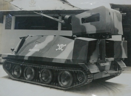 El montaje completo de la pieza se mantenía íntegro, aprovechando el mismo trailer para remplazar las llantas por planchas de protección y las dos laterales complementadas por un techo y dos compuertas traseras. El sistema M55A2 era, y lo es aún, una pieza antiaérea manual de último recurso y eficiencia limitada, de hecho obsoleta, contra blancos aéreos, pero aun hoy muy útil y temible contra blancos terrestres. Se construyeron 4 ejemplares, destinados a la Guardia Nacional, al Batallón de Seguridad de la Base Aérea de Ilopango, a la Brigada de Artillería y uno más al Oriente, sin detallar dónde.
