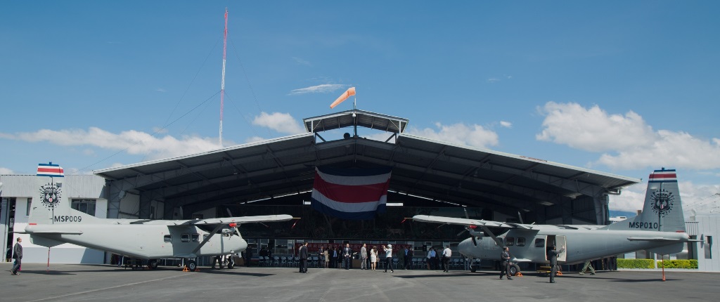 Los Y-12E durante su entrega a Costa Rica. El Y-12E asemeja al DHC-6 Twin Otter canadiense; monta dos motores turbohélice P&W PT6A-27. (Presidencia de Costa Rica)