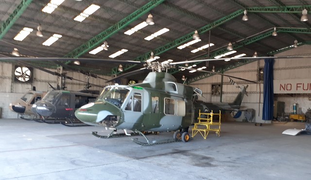 Visitamos las instalaciones de la 1ª Brigada de la FAS y corroboramos que funcionan tres UH-1H, con dos mas en mantenimiento, y un M funcionales. Otros tres fuselajes están en hangares y disponibles para dicha tarea si se obtienen los fondos. Sorprendentemente, más fuselajes podrían estar disponibles en el “baratillo” (el cementerio de helicópteros) ya que lo importante para la conversión es el esqueleto de la máquina, y no su fuselaje en sí. Unas doce conversiones a Huey-II podrían mas que compensar las necesidades y hasta se podría pensar en otras tres conversiones para los modelos ambulancias, el asunto es que de hacerse una inversión fuerte se prefiere una maquina nueva, pues si una renovación necesita un 40% de presupuesto, mejor lo nuevo.