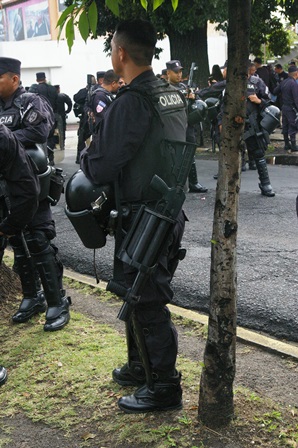 PNC de El Salvador con fusiles Galil ACE de Indumil (J. Montes)