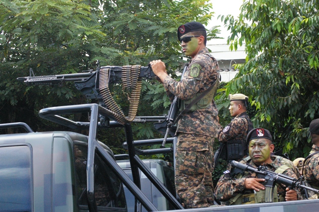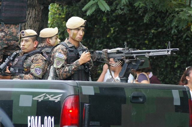 Las calles se las disputan las pandillas MS-13 y M-18, que tienen facciones disidentes (Mirada Loca de la MS-13 y Sureños Revolucionarios de la M-18). La Mao-Mao opera entre los municipios de San Salvador y Mejicanos. Las unidades militares se quejan de la falta de equipos para combatirlos. Agregamos que es notable que solo unidades especiales han sido dotadas con los nuevos fusiles M4 y M4A1, mientras que los paracaidistas aún llevan los FN FNC (que teóricamente habían sido remplazados con las M4A1), y lo mismo sucede con la Policía Militar. Todas las unidades deberían equiparse con un solo tipo estándar de arma, y aunque no muy necesario aún, habrá que remodelar las ametralladoras M60 de la Infantería a los modelos E4 y E6, para hacerles más fiables y adecuadas a los nuevos escenarios. (J. Montes)