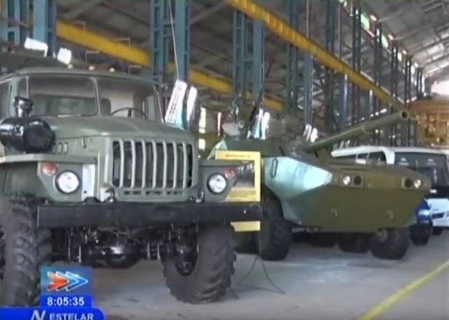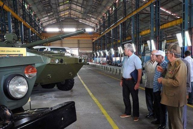 Durante la última visita de aquella jornada de inspección la comitiva recaló en la Empresa Militar Industrial Emilio Bárcenas Pier, donde pudieron ver el trabajo de modernización de equipamiento militar y también los resultados en la reparación de ómnibus, tractores, grúas, camiones y muebles, según la nota oficial. Además, en las imágenes de la televisión cubana, que se centró en explicar como la empresa realizaba carrocerías de fibra de vidrio para los vehículos ligeros 4x4 rusos GAZ, aparece brevemente la imagen de un 8x8, que sería un BTR-60 muy modificado, que monta una torre dotada de un cañón muy probablemente el soviético U-5TS de 115 mm.