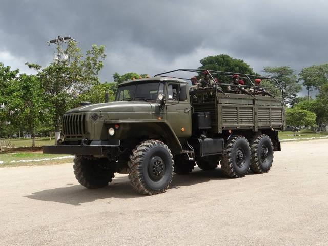 El paquete fue recibido por el presidente de Guatemala, Jimmy Morales; el titular del Ministerio de Gobernación, Francisco Rivas, y el embajador de EE.UU. Todd Robinson. El Servicio Material de Guerra, por su parte, ha repotenciado la flotilla completa de vehículos blindados Armadillo, y al parecer se han convertido varios camiones pesados Ural en transportes protegidos, aplicándoles planchas blindadas a los lados de la cama. Fue en febrero del año 2012 cuando Rusia reconocía un aumento de pedidos militares, entre ellos paquetes a Guatemala, estableciéndose una cooperación tecnológico-militar con este país. Los pedidos incluían no solo camiones Ural, también fusiles Saiga-12.