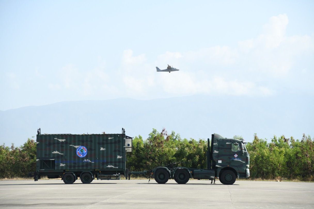 Tráiler con tractor HOWO-A7 6×4 en el que se encuentra el radar multimisión de fabricación israelí ieMHR, en la vertical un avión de vigilancia Tecnam P2006T. (Foto: FARD)