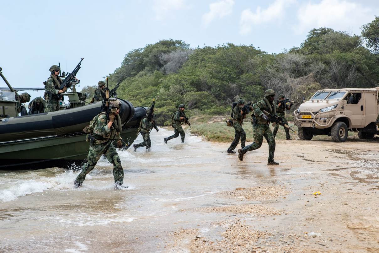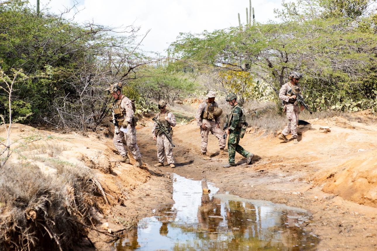 Destacamentos perteneciente al 33º Regimiento de Infantería de Marina (33 RIMa) de L’ Armée de Terre (Ejército de Tierra) francés, Cuerpo de Infantería de Marina del Sur (US Marines Corp South) e Infantería de Marina de Países Bajos (Korps Mariniers), tomaron parte del ejercicio militar “Tres Colores 24” (Très Kólos 24), realizado en la base de los Reales Infantes de Marina Neerlandeses (Royal Netherlands Marine) en Camp Savaneta, isla de Aruba en el Mar Caribe.