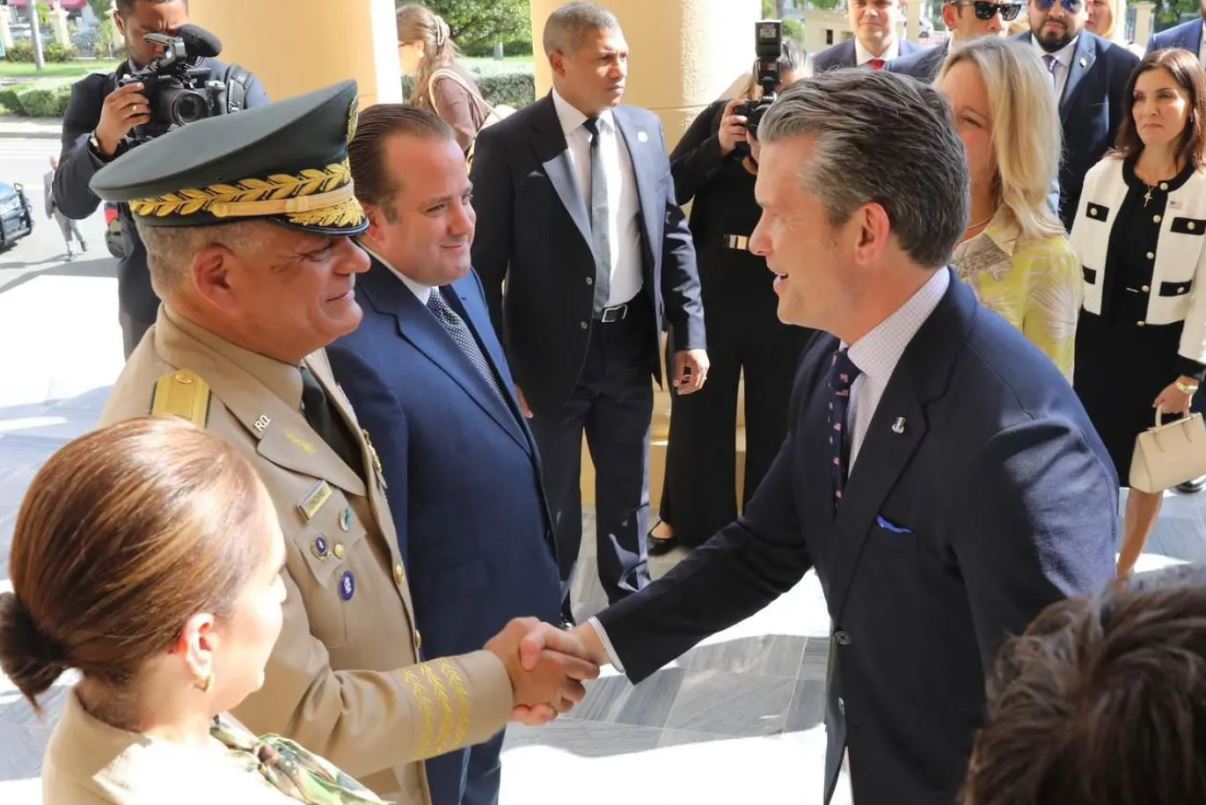 El ministro de Defensa dominicano, teniente general Onofre, con el secretario de Guerra de Estados Unidos, Pete Hegseth. (Foto: MIDE)