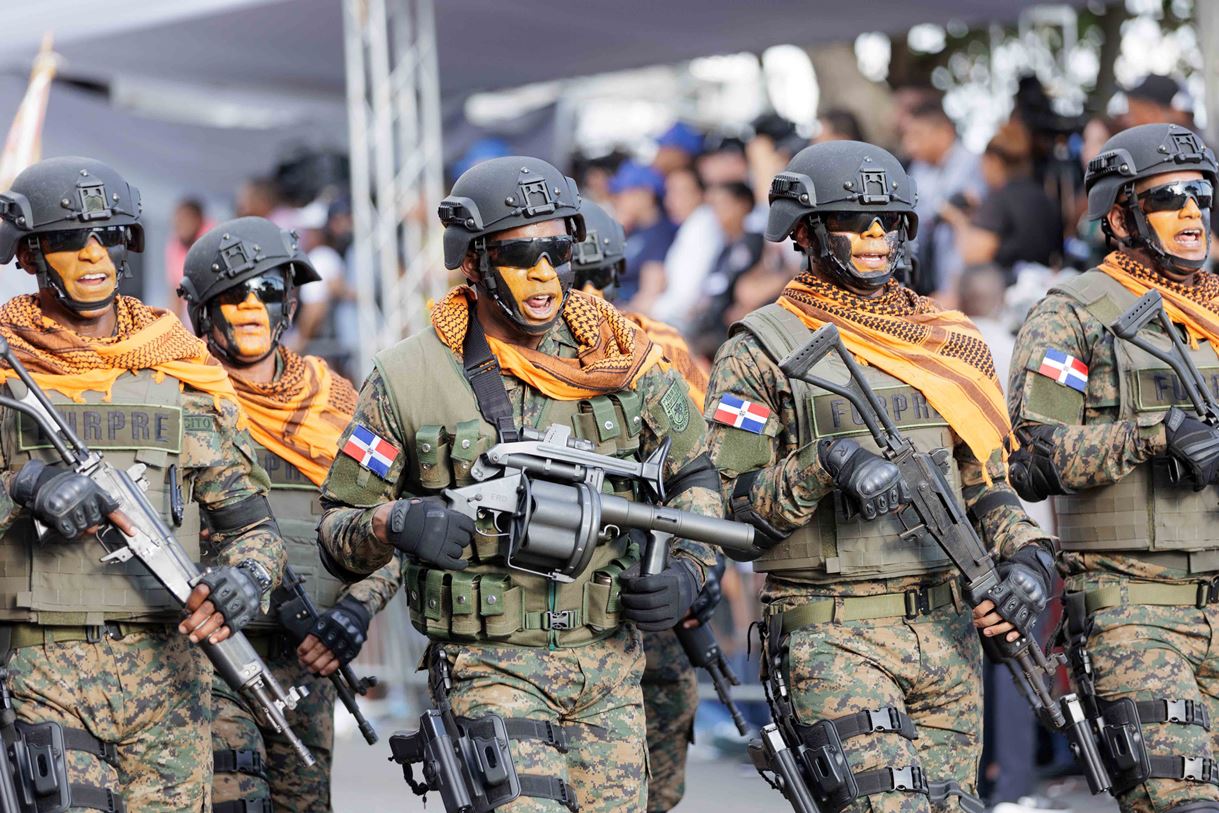 Unidades de élite, como la FURPRE del Ejército, estuvieron presentes con su característicos equipo y armas. (Presidencia República Dominicana)