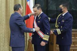 Reproducimos las palabras del general Arturo Merino, Comandante en Jefe de la Fuerza Aérea de Chile, agradeciendo la condecoración del Gran Cruz del Mérito aeronáutico con distintivo blanco recibida del Jefe de Estado Mayor del Ejército del Aire español, general Javier Salto.