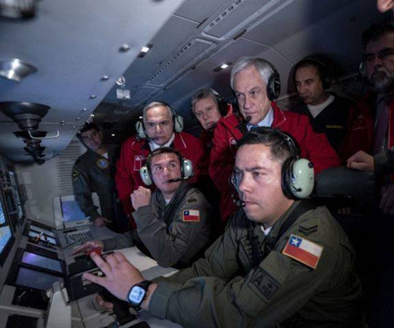 En tanto, la noche del miércoles el Jefe de Estado realizó un sobrevuelo en la frontera junto a los ministros de Interior, Andrés Chadwick, y de Defensa, Alberto Espina, además del subsecretario Rodrigo Ubilla, en un avión vigía de la Armada que está colaborando en la frontera con las fuerzas de seguridad en la lucha contra el narcotráfico y la delincuencia.(Pamela Squella, corresponsal de Grupo Edefa en Santiago de Chile)