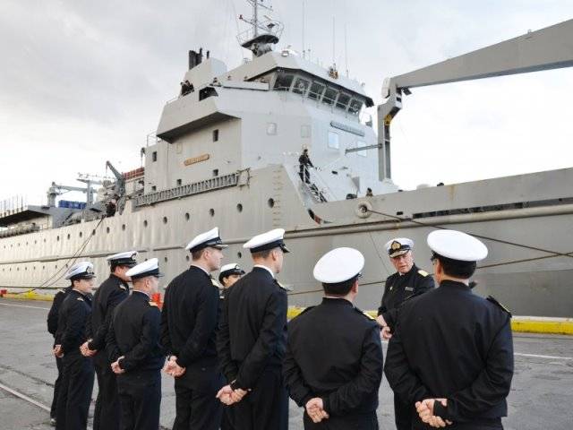 Fuente y Fotografía (Armada de Chile) : El buque Aquiles en Punta Arenas fue recibida por el Comandante en Jefe de la Tercera Zona Naval, el Contraalmirante Ronald Baasch y su Estado Mayor. (FOTO: Armada de Chile)