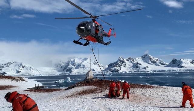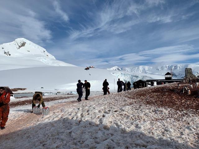 Las condiciones meteorológicas en el área, viento calma y despejado, permitieron materializar actividades de apoyo en forma simultánea, como la realizada mediante unidades aeronavales, específicamente los helicópteros navales N-44 y N-46, donde se desembarcaron a través de maniobra VERTREP 126 tambores de combustible para el sostenimiento del sistema de operación eléctrica, la entrega de 25 metros cúbicos por medio de botes de goma impulsados por personas de la Infantería Marina y el traslado de víveres y materiales de construcción a través de barcaza “Skúa”.