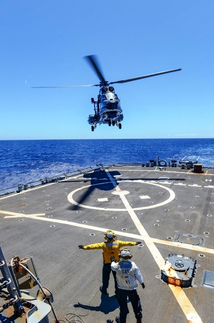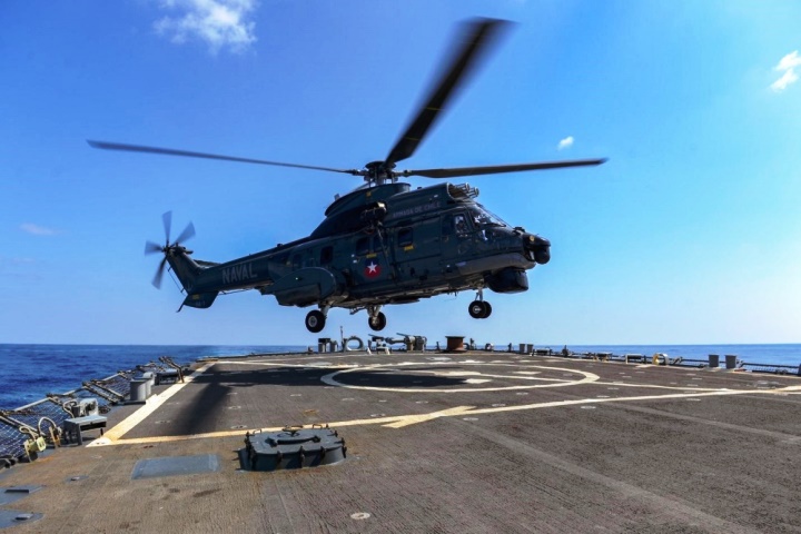 Los ejercicios consistieron en el aterrizaje de un helicóptero SH-32 Cougar, embarcado en la Fragata FF-15 "Almirante Blanco Encalada", en la cubierta de vuelo del USS Russell (DDG-59). Según la Marina de EE.UU, el USS Russell se despliega en el área de operaciones de la Séptima Flota estadounidense "en apoyo de la seguridad y estabilidad en la región del Indo-Pacífico", formando parte del grupo de combate del Portaaviones USS Ronald Reagan (CVN-76).