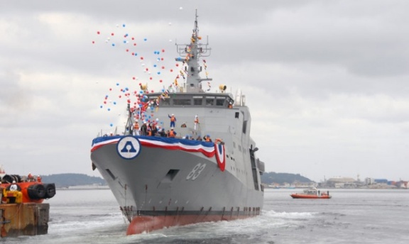 (defensa.com) El anuncio de la Presidenta Michelle Bachelet de la asignación de 230 millones de dólares a la Armada en su mayoría para la construcción naval, tiene efectos concretos en Asmar. Ante todo, continua con la puesta en grada del 4° casco, la construcción de los OPV. Cabe destacar que durante Exponaval dos de ellos estuvieron visibles en el puerto de Valparaíso, sobresaliendo el ultimo entregado, el OPV-83 “Marinero Fuentealba”, ejemplar que incorpora mejoras sobre los dos anteriores, catalogado Winter Class, para operar en los mares australes de Chile y equipado con cañón Oto Melara de 76mm y componentes electrónicos heredados (al igual que el cañón) de una misilera Tipo 148 dada de baja.