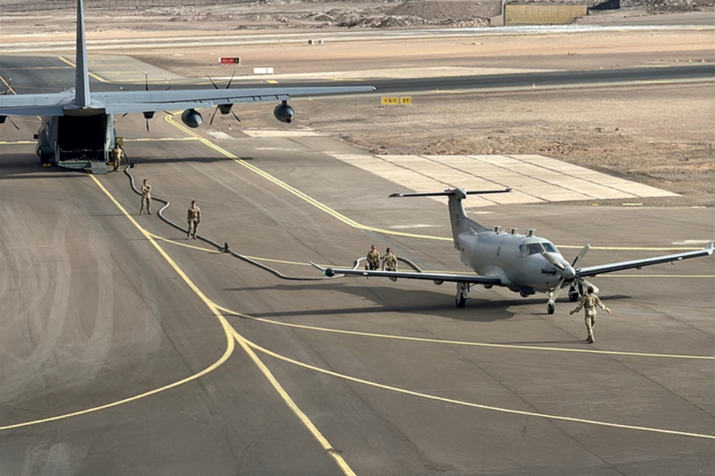 El viernes 30 de mayo, la Base Aérea Cerro Moreno fue escenario de una compleja misión de reabastecimiento en la losa de operaciones. La operación, también parte de “Estrella Austral 2025”, involucró a dos aeronaves de la USAF, un C-130 Hércules y un Pilatus U-28 Draco. En un procedimiento de alta precisión, el C-130, con su rampa trasera desplegada, suministró combustible al U-28 con el motor en marcha, simulando el apoyo logístico en pistas no preparadas o en zonas de conflicto con infraestructura limitada.