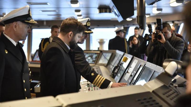 El Presidente Boric pronunció las siguientes palabras al dirigirse a los presentes: “Chile es la puerta de entrada del mundo a la Antártica, el “Almirante Viel” es un embajador flotante (…) El hecho de tener un buque capaz de operar en aguas antárticas prácticamente sin restricciones y llegar mucho más al sur que el antiguo rompehielos, es tremendamente significativo para la soberanía de Chile”.