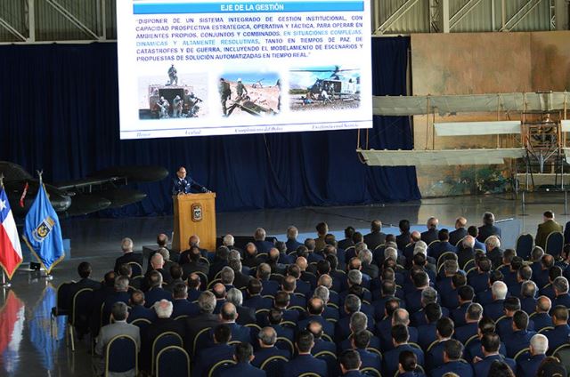 Abordó también la gestión institucional para el control de los actos administrativos, los procesos financieros, el área logística, la Feria Internacional del Aire y del Espacio, los proyectos de renovación de aeronaves Cirrus y helicópteros Black Hawk, los ejercicios en que ha participado la Institución, las actividades de rescate y de apoyo a la comunidad, las operaciones en la Antártica, entre otras materias.