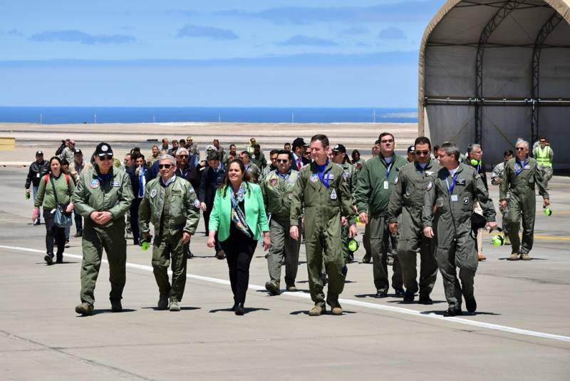 Durante la visita, también efectuaron un recorrido por los hangares asignados a las delegaciones de Argentina y Brasil, para luego de ello dirigirse a la losa de operaciones, a fin de observar las salidas rápidas de las aeronaves F-16 de Chile, F-5 M brasileños y A4-AR, de la Fuerza Aérea Argentina, entre otros medios de combate que participan en esta cuarta edición del Ejercicio Combinado Salitre.