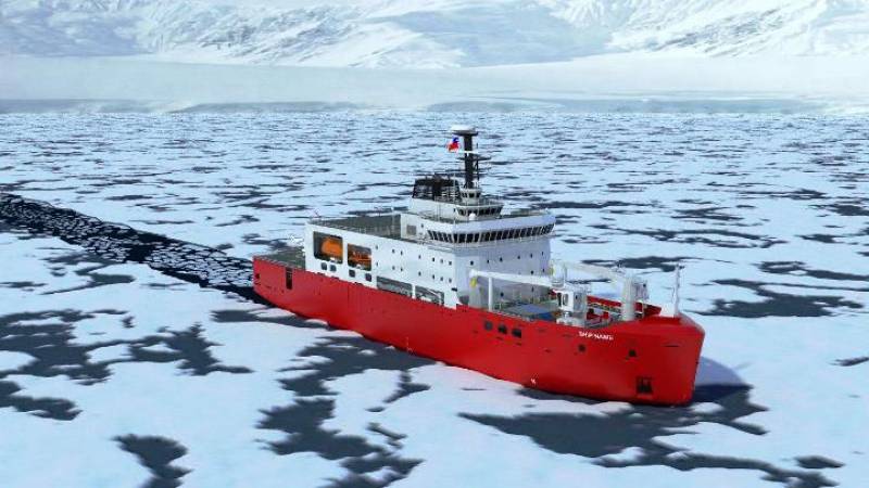 La fabricación de este rompehielos para la Armada de Chile se inició el año 2018 y será entregado para su servicio el 2023. Tendrá un desplazamiento de más de 10.000 toneladas, con una eslora de 111 metros y una manga de 21 metros.