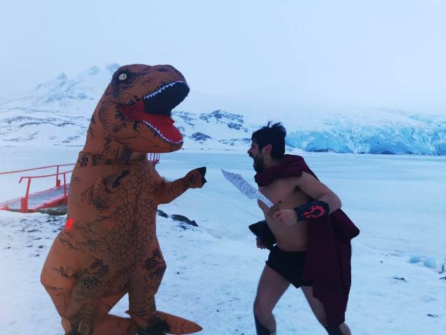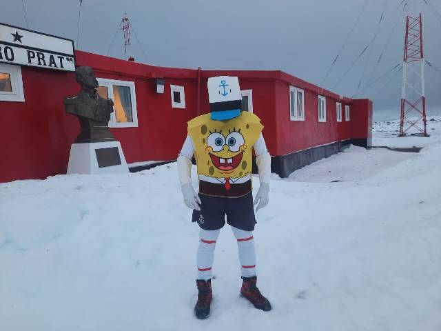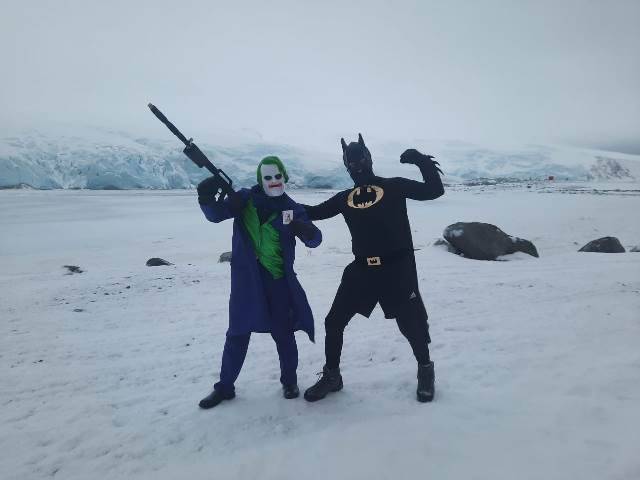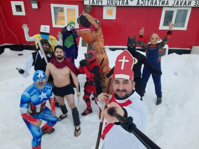 De esta manera la dotación, que lleva más de siete meses en la base, preparó con tiempo y en total hermetismo sus disfraces con el objetivo de celebrar a la intemperie este magno acontecimiento. Superando las extremas temperaturas y rachas de viento, la dotación se aventuró al exterior, haciendo una pausa en sus actividades, realizando diversas actividades personificando a personajes y en un momento lúdico de camaradería enviando un saludo desde el extremo austral de nuestro país.