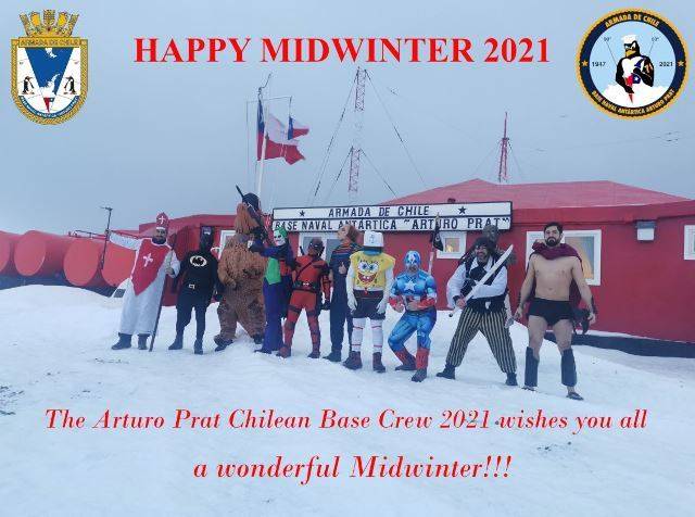 El 20 de junio la dotación de la Base Naval Antártica “Arturo Prat”, cumpliendo con una tradición de larga data en los territorios antárticos de Chile, conmemoró con disfraces el solsticio de invierno, hecho astronómico que marca el inicio del periodo más frío del año.